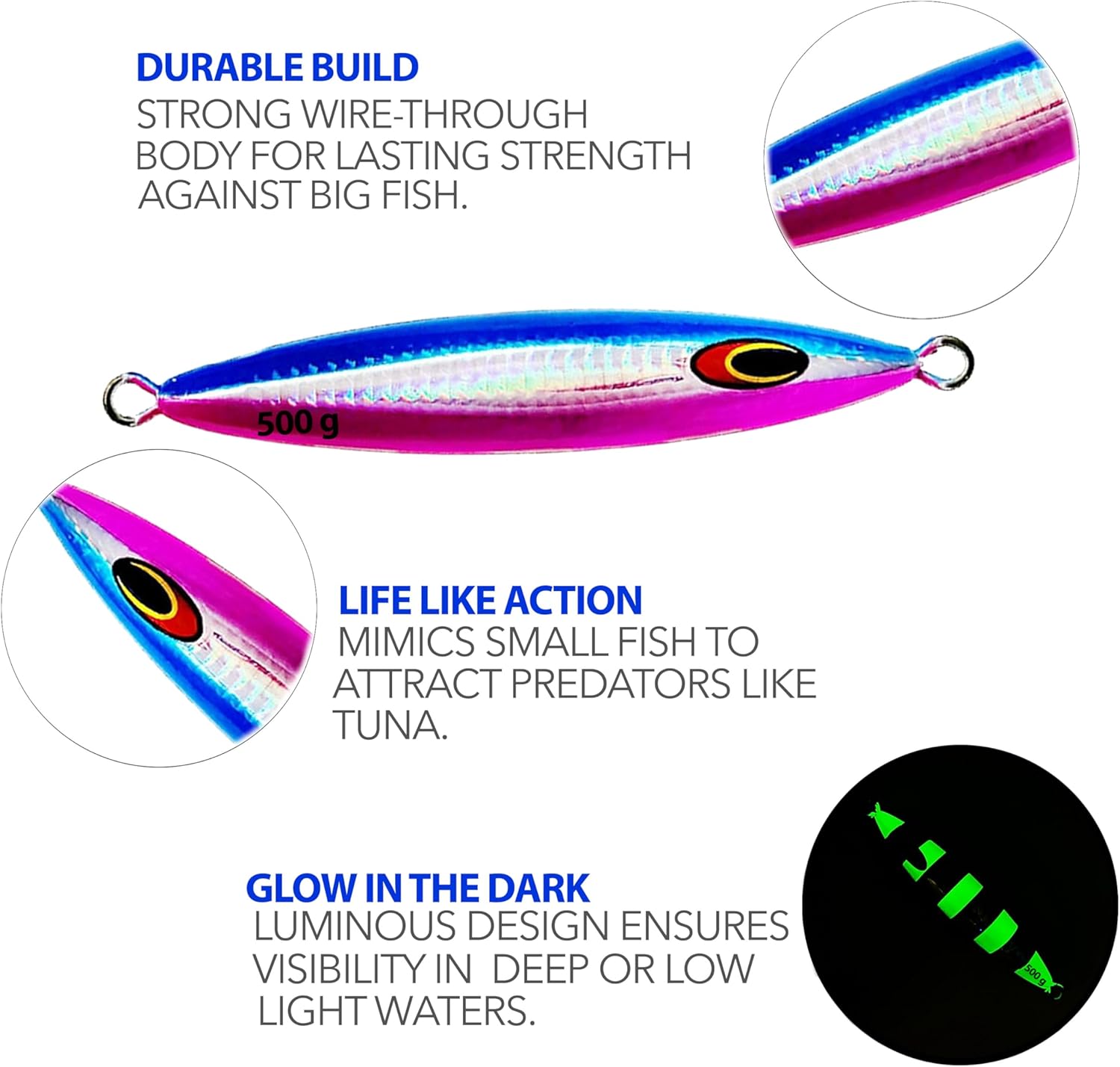 Upgrade your fishing game with the 6.5" Tuna Jig 3 PCs Blue Pink Zebra Glow 500g — a powerful and reliable lure built for serious anglers. This tuna jig delivers the ideal combination of weight and action, making it a top performer for tuna fishing, bass fishing, and targeting a wide range of saltwater and freshwater species. Crafted from premium, corrosion-resistant materials, this saltwater fishing lure is built to withstand harsh offshore conditions. The vibrant Blue Pink Zebra Glow finish increases visibility in deep or low-light waters, helping trigger aggressive strikes from trophy fish like tuna, amberjack, and striped bass. Compatible with most fishing rods, this jig ensures smooth, responsive control with every cast and retrieve. It’s a versatile choice for both inshore and offshore fishing, offering dependable performance in any setting. Perfect for anglers seeking high-quality fishing gear deals, this 500g tuna jig is an essential addition to your fishing tackle. Whether you’re a weekend warrior or a seasoned pro, this lure is designed to boost your success on the water—every trip, every cast.